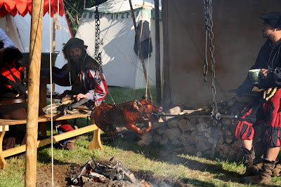 Escondi-me atrás dos meus óculos escuros super cool de Amsterdam e, ao som de uma gaita de fole, perambulei pelo acampamento de tendas e lojinhas medievais, que vendiam desde peles de animais, couro e poções mágicas até espadas e escudos. Perdi-me entre a fumaça das várias fogueiras de famílias fantasiadas, que assavam porcos inteiros no rolete e bebiam vinho nos seus vasos de barro ou copos chifre-de-bicho.